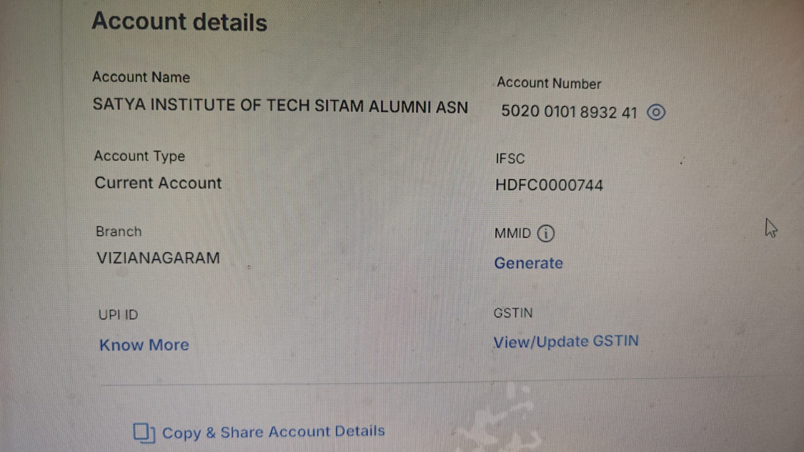 IFSC CODE: HDFC 00 00 744