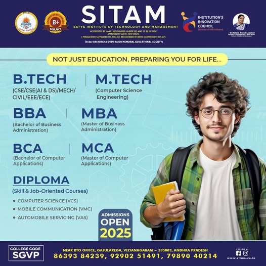 Admissions under category ‘A’ (regular) are made by the AP state council of Higher Education through a common entrance test EAMCET. Preferred Institution after University Colleges.